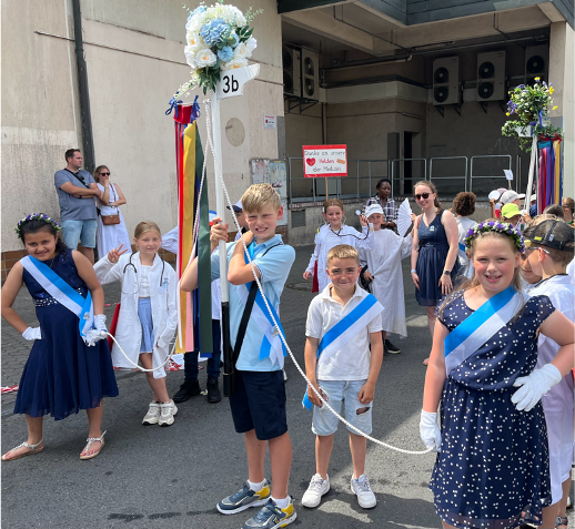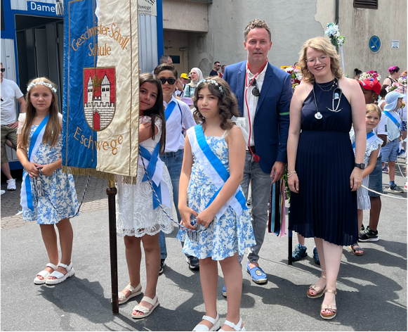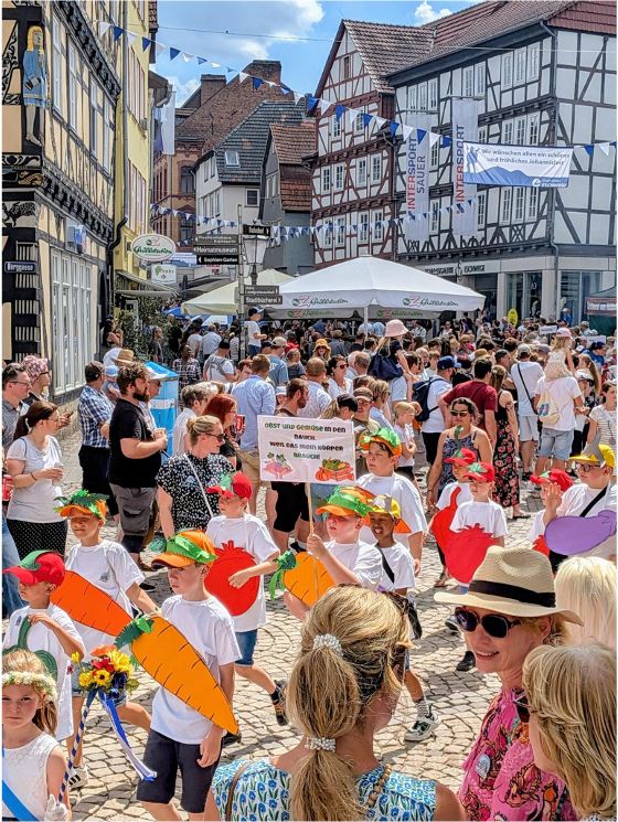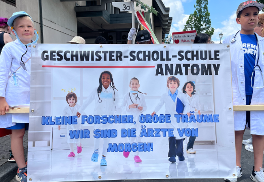 Mit strahlenden Gesichtern und fantasievollen Kostümen beteiligte sich die Geschwister-Scholl-Schule am Festumzug des Eschweger Johannisfestes, das vom 26. bis 30. Juni 2025 gefeiert wurde. Unter dem Motto „Eschwege bleibt gesund“ verwandelte sich die Schulgemeinschaft in ein farbenfrohes Bild voller Lebensfreude. Die Kinder der Klasse 2a glänzten als fröhliches Obst, die Klasse 2b brachte mit buntem Gemüse Frische und Vielfalt in den Umzug. Die dritten Klassen stellten eindrucksvoll Ärzte und Patienten dar und machten deutlich, wie wichtig Fürsorge und Zusammenhalt sind. Für Bewegung, Energie und sportliche Begeisterung sorgten schließlich die vierten Klassen, die verschiedene Sportarten präsentierten. So entstand ein lebendiger Beitrag der Geschwister-Scholl-Schule, der die Zuschauerinnen und Zuschauer am Straßenrand begeisterte und das Johannisfest zu einem unvergesslichen Erlebnis machte. Gemeinsam wurde gezeigt, dass Gesundheit nicht nur wichtig, sondern auch bunt, fröhlich und festlich sein kann.