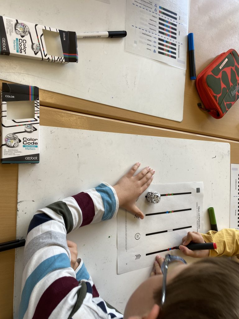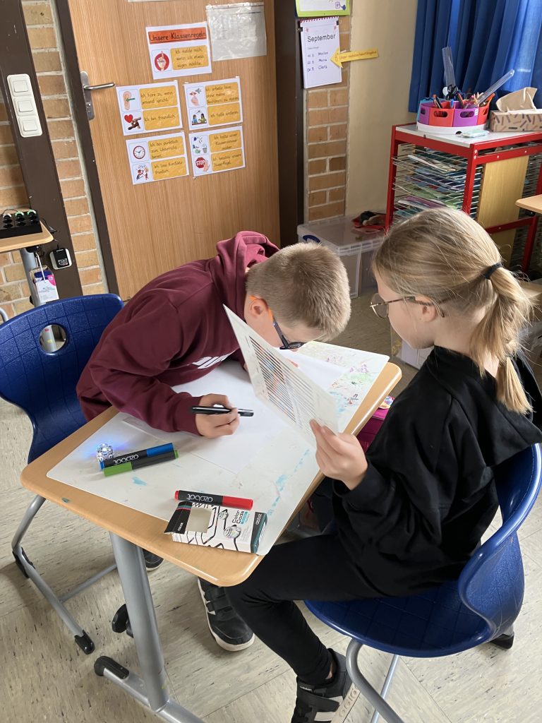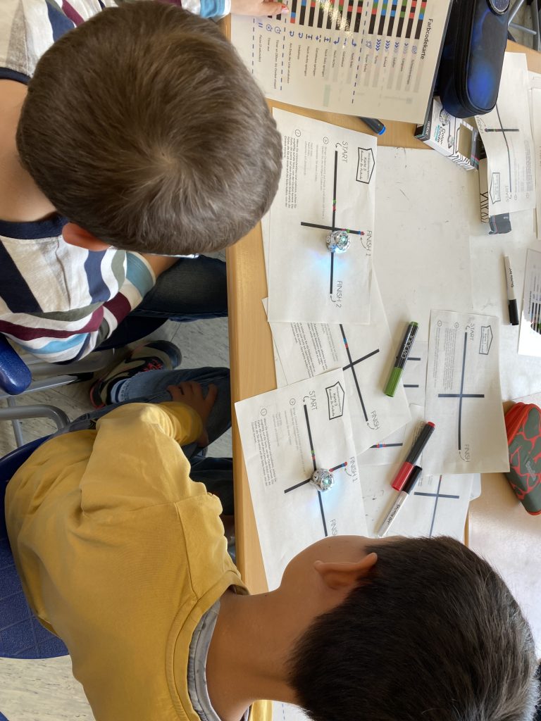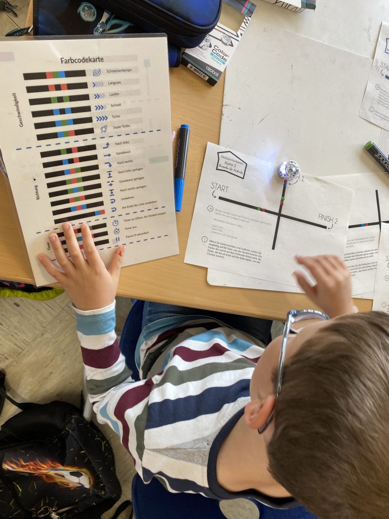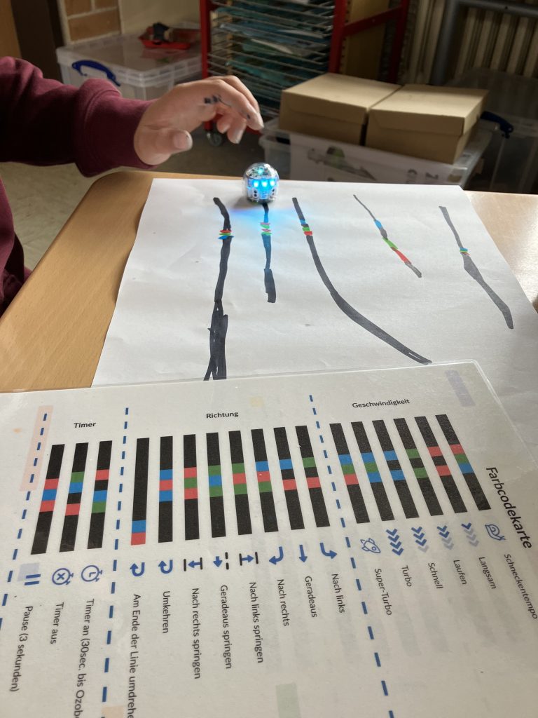 Besonders interessant war die Arbeit mit den kleinen Robotern, den Ozobots. Sie können Linien und Farben erkennen und reagieren auf bestimmte Farbcodes. Die Kinder mussten verschiedene Denksportaufgaben lösen, bei denen die Roboter bestimmte Wege finden oder Aufgaben erfüllen sollten. Dabei war genaues Planen und logisches Denken gefragt, und die Ergebnisse sorgten für viel Spannung.