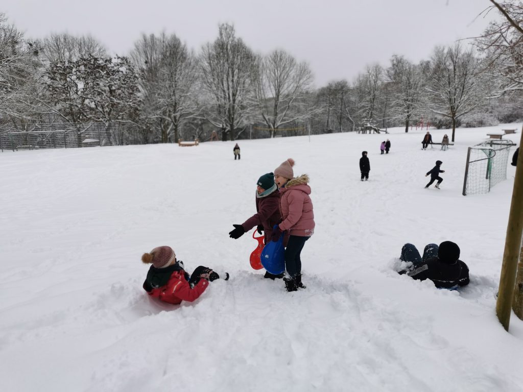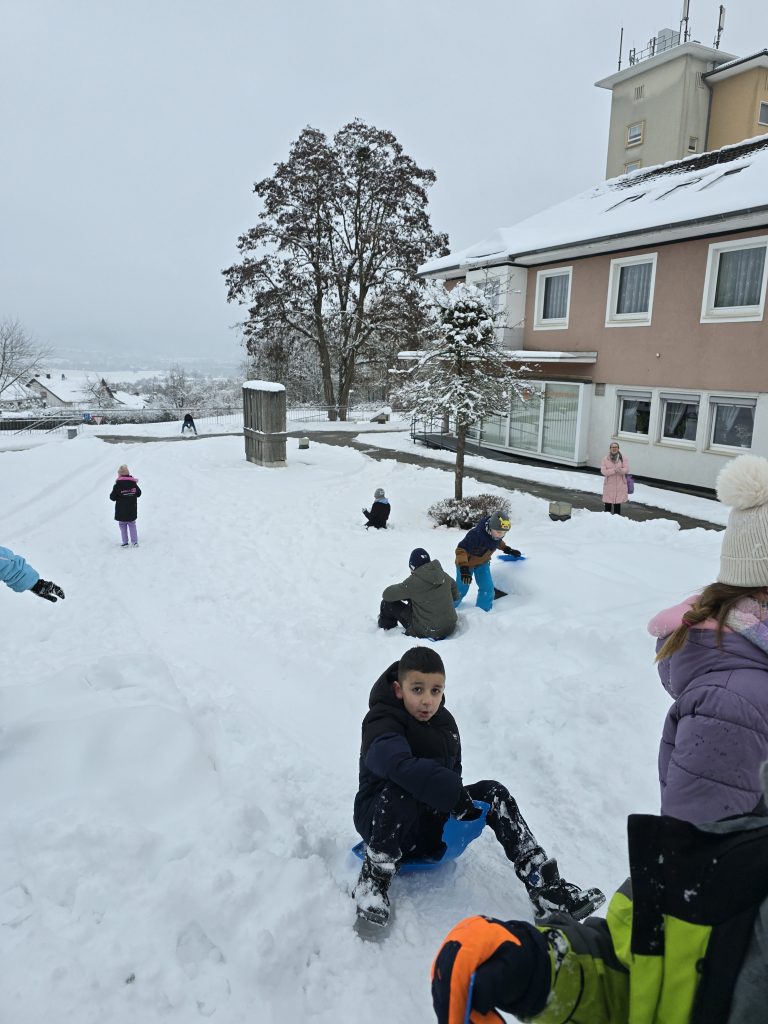 Am letzten Schultag des ersten Halbjahres wurde es bei uns noch einmal richtig aufregend. Alle Kinder brachten ihre Poporutscher mit und sausten fröhlich durch den Schnee. Dabei wurde viel gelacht, gerutscht und gemeinsam Spaß gehabt.