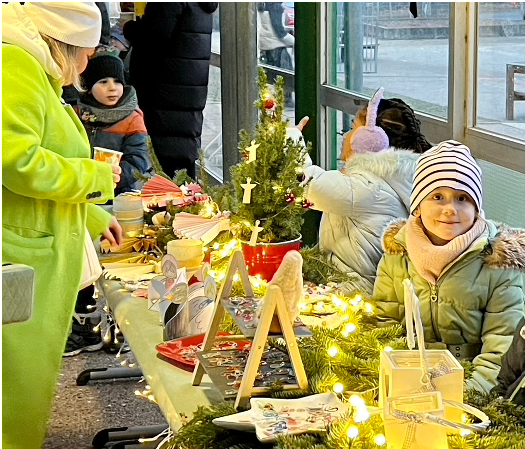 Erstmals war auch die Kita Spatzennest mit einem eigenen Stand vertreten und bereicherte den Weihnachtsmarkt mit schönen Angeboten für Kinder und Familien.